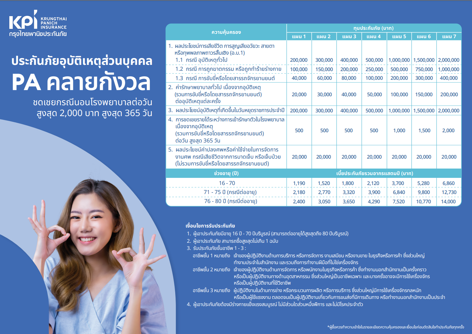 เหมาะสำหรับ : ผู้ใหญ่ 16-60 ปี , มีชดเชยรายได้